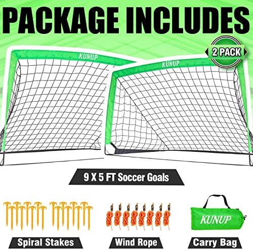 Kunup Kids Soccer Goals for Backyard 5x3FT 6x4FT 9x5FT Large Set of 2 Portable Soccer Nets for Backyard Folding Soccer Goals Practice Nets with Carrying Bag for Outdoor Indoor