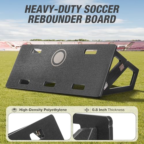 Your Portable Soccer Training Partner: Foldable legs + 5 grip holes make this the ultimate portable soccer rebounder board – sets up anywhere in seconds and stashes flat. Ideal for park sessions or garage drills